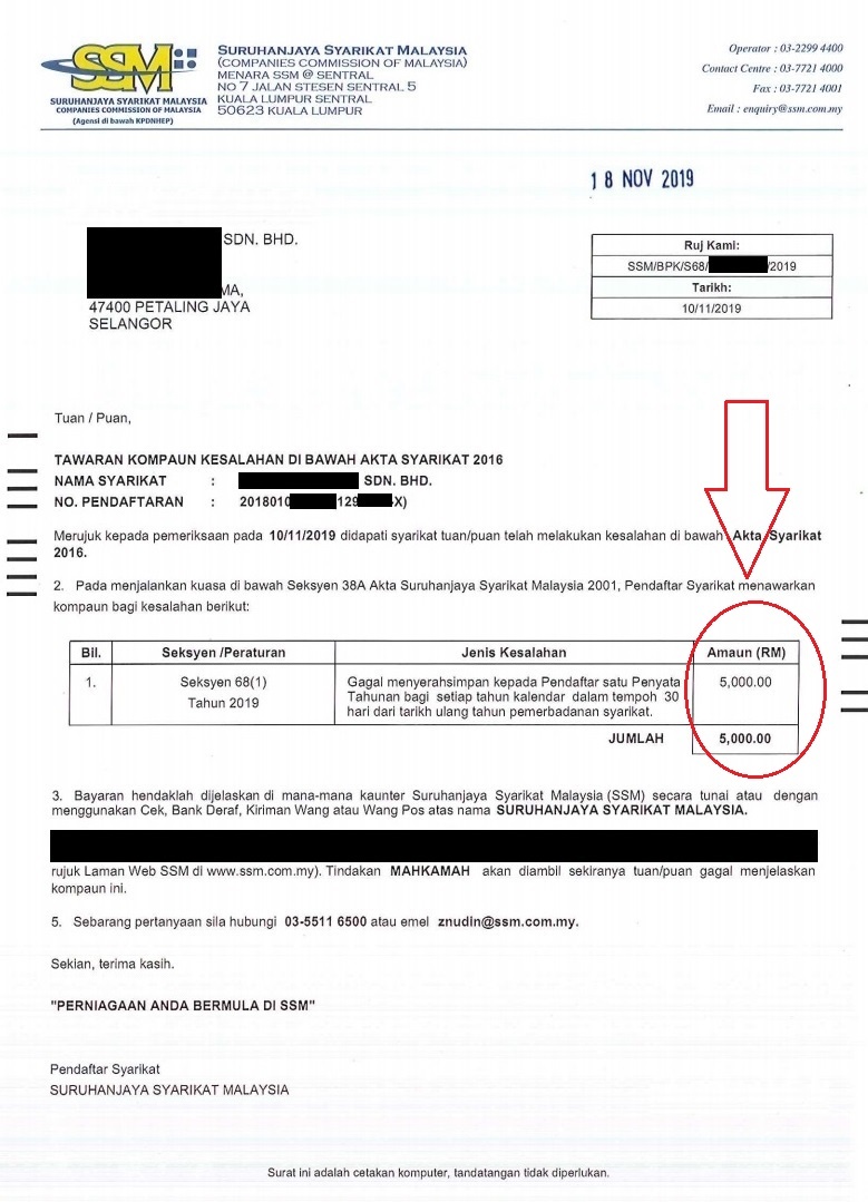 Your failure to comply with this requirement is an offence that is punishable with a fine not exceeding RM 5000 or an imprisonment for a term not exceeding one year or both.